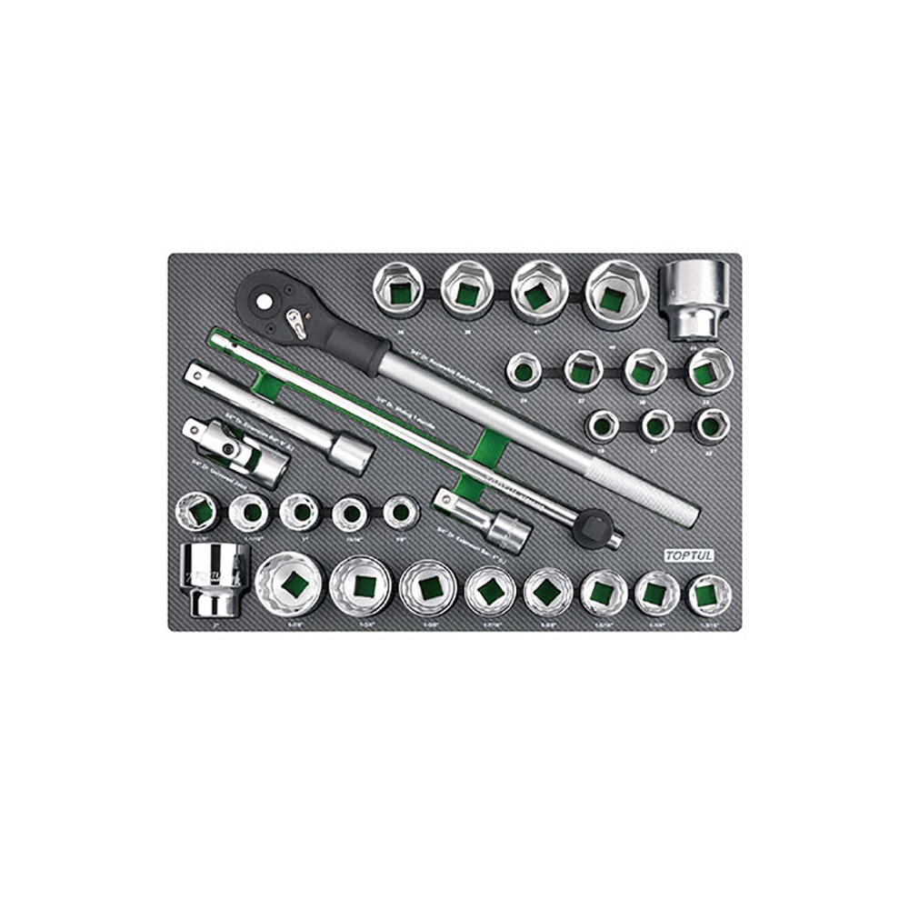 Trong khuôn khổ một bài viết mới mục đích chủ yếu công bố các thông số kỹ thuật của mặt hàng Bộ cần siết và đầu tuýp 3/4" 31 chi tiết Toptul GED3108, chúng tôi xin không rườm rà thảo luận chi tiết các vấn đề khác. Nhưng để cho quý khách có thể hình dung thêm về sản phẩm, chúng tôi công bố một vài hình ảnh của sản phẩm dưới đây với mục đích tham khảo