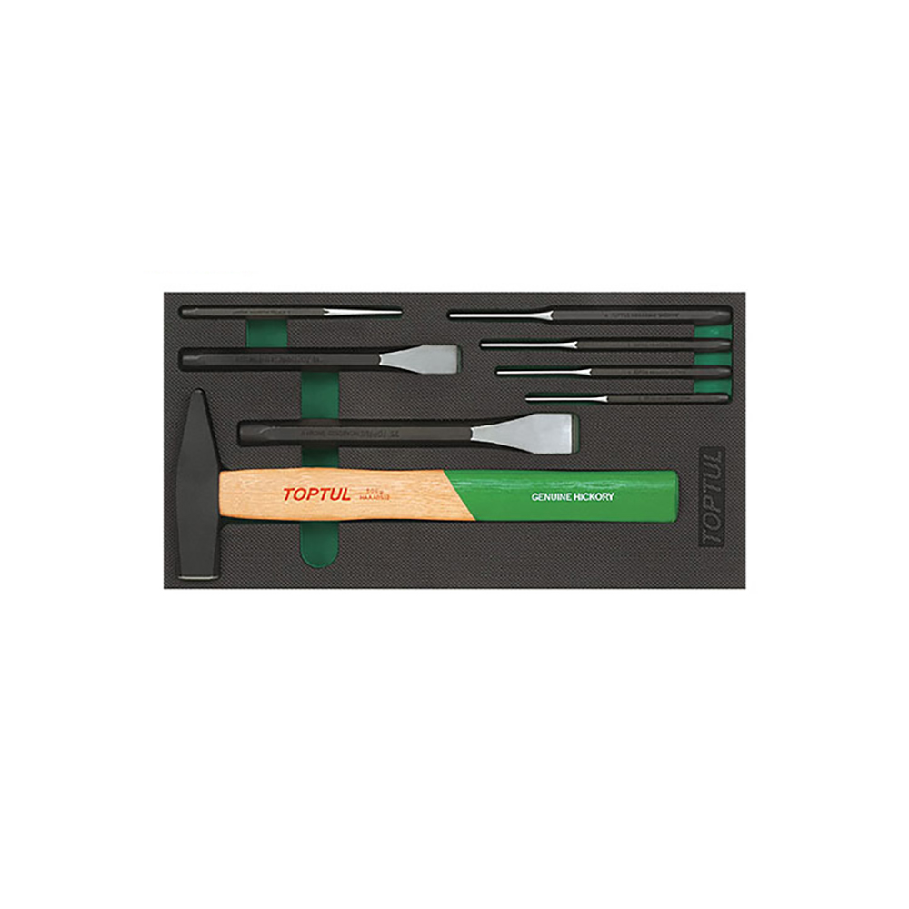 Bảng thông số kỹ thuật của Bộ búa đột và đục 8 chi tiết Toptul GVA0807 đầy đủ và chi tiết nhất, hãy liên hệ để nhận báo giá và đặt mua từ nhà phân phối CÔNG CỤ TỐT của hãng Toptul